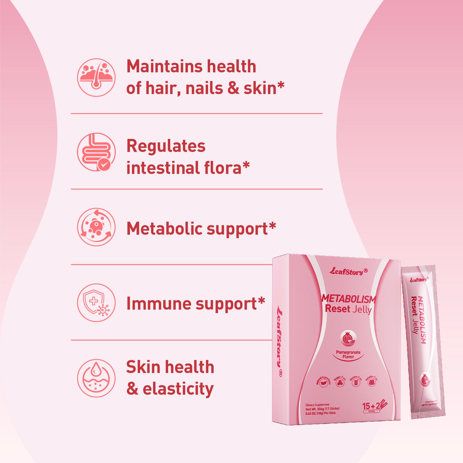Metabolism Reset Jelly is your key to revitalizing your body's natural balance by nurturing healthy intestinal flora and strengthening your immune system. This expertly crafted formula not only boosts your metabolism, helping you feel more energetic and efficient, but also enhances the health and appearance of your hair, nails, and skin. By supporting skin elasticity, it promotes a vibrant, youthful look that truly stands out. Every serving delivers comprehensive wellness, empowering you to take control of your health and feel your best from the inside out. Make Metabolism Reset Jelly a part of your daily routine and experience the transformation for yourself.